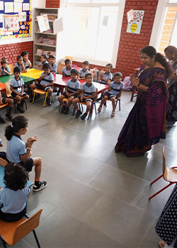 Learning is made fun at the PreKG, LKG and UKG levels. Tiny tots are engaged in creative activities that spark their curious minds which in turn instills a thirst for learning.